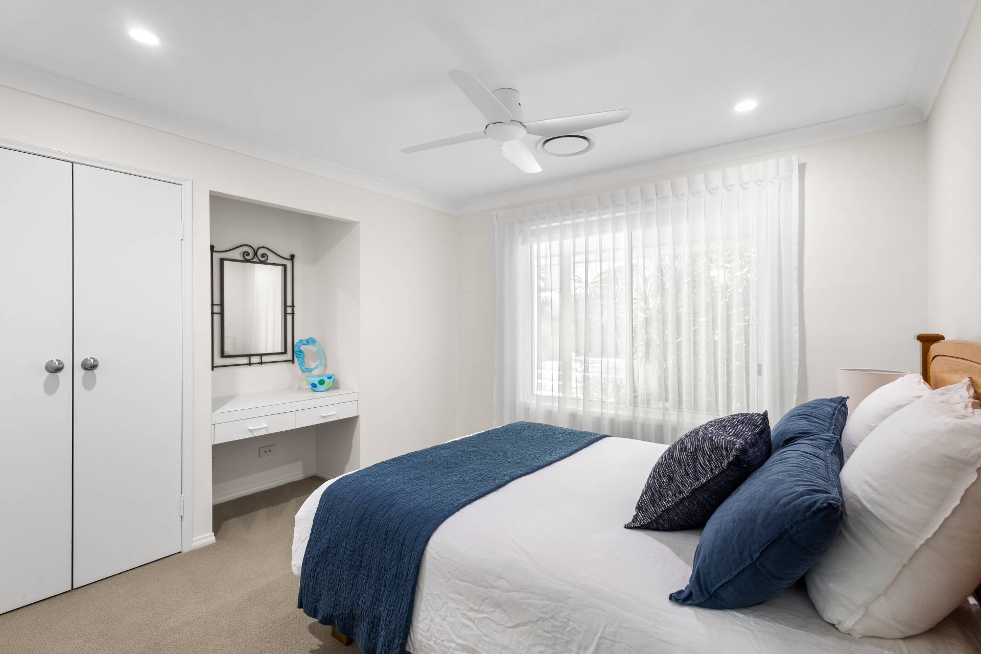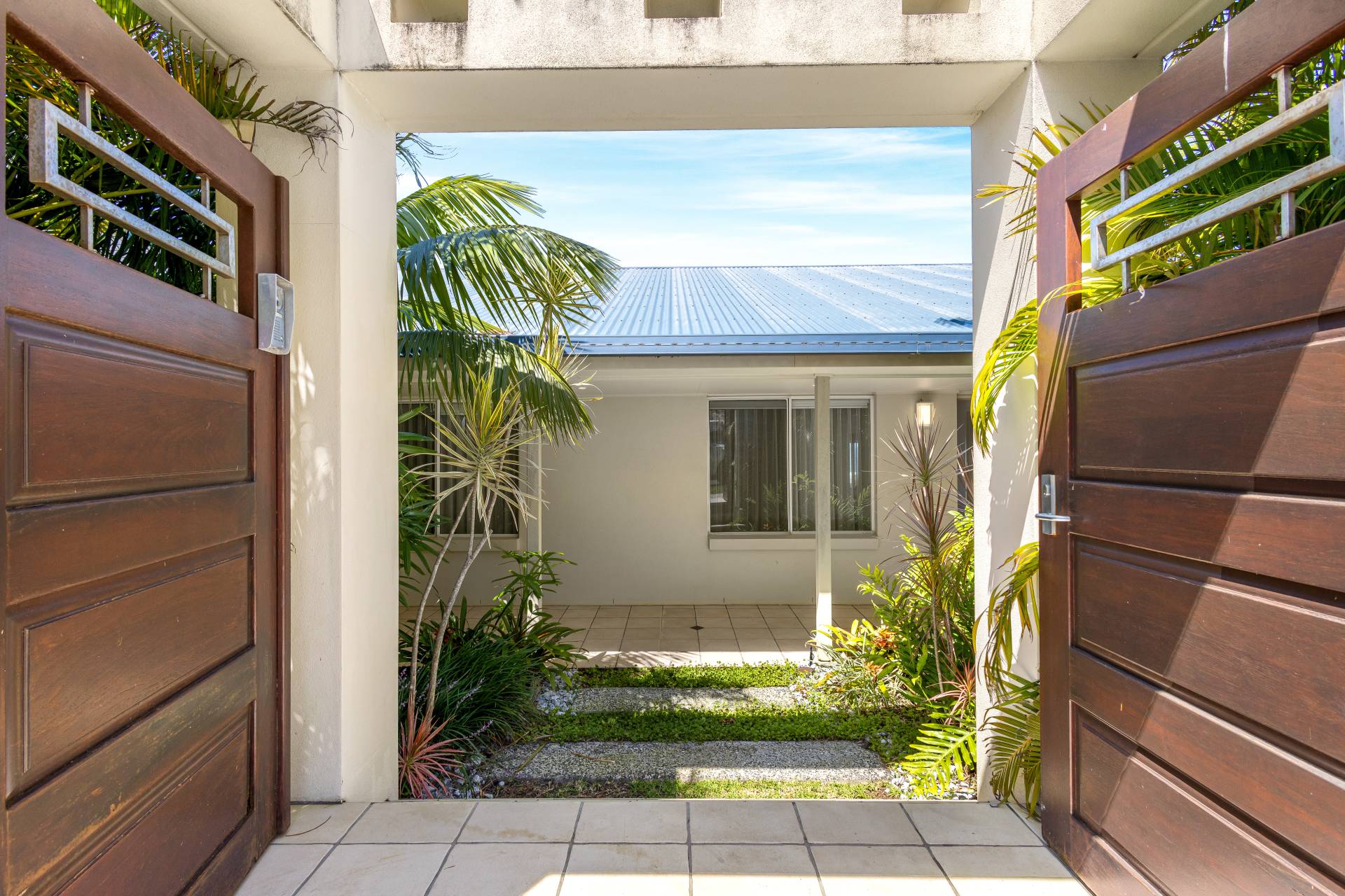 The home is ultra-private from the street with access through the double timber gates or double garage to a landscaped courtyard.  As you enter the home there are two generous bedrooms on the immediate left and right of the entry way, one with it's own ensuite.